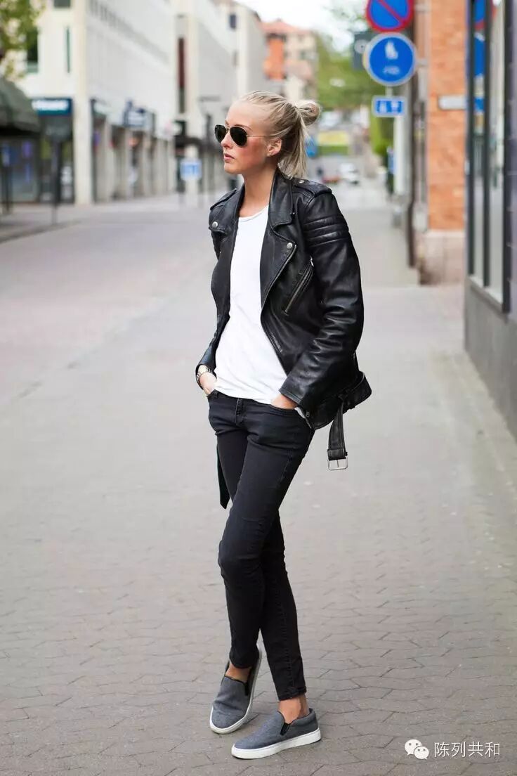 4外套 不可缺少的外套当中,必须入手的两款经典就是:小西装+皮夹克。此外各种类型的外套就看个人的喜好了,比如牛仔上衣,或那种类似风衣款的长外套也十分常见和实用。