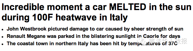 法国又被嘲笑了。意大利最近持续高温,一辆停在路边的法国轿车,被烈日晒。化。了。。。全世界的媒体都在报道这件事儿。