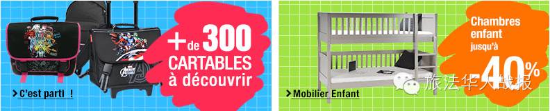 此外,8月11日到17日,家乐福的主题是“买一赠一”!鸡肉、火腿、沙拉、咖喱面、麦片、罐装咖啡、饼干橄榄油、红酒、啤酒、雪糕、海鲜、烧烤成品…乃至洗发水等日化品、手机及其他电子产品,很多都是五折!8月4日到17日是“买二赠一”时间!多种葡萄酒、Whisky、Get27等烈酒、汽水、果饮、薯片、奶酪、巧克力等都有优惠。 AUCHAN 作为法国第二大综合超市,欧尚(AUCHAN)也已经开启返校大折扣了。各类铅笔、文件夹、本子、计算器等种类齐全,而且部分商品价格低至五折~如男款RG512背包有八折优惠,现价27.9欧,部分日程本有37%的优惠,优惠后只需要2欧到4欧不等。