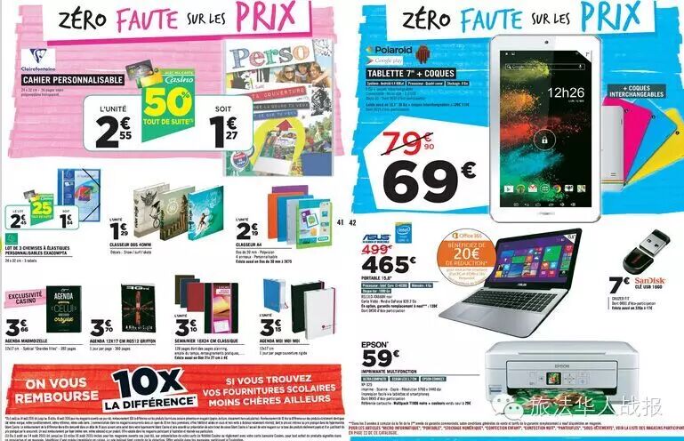 8月5日到15日,Géant Casino返校打折活动很多~96页个性笔记本,原价每个2.55欧,拿上会员卡立减50%,每个1.27欧;电子产品也都有优惠,8g安卓平板每台原价79.9欧,现在每台69欧;32g优盘现价7欧一个,也是非常划算呢!