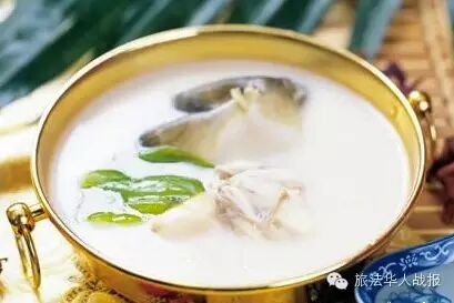 法国人吃蛋则讲究新鲜,松花蛋的法文译文叫“百年蛋”,绝对不新鲜。打开一看,黑黑绿绿,稀稀腻腻,令法国人望而生畏。同胞们想问一问,真有那么难吃吗?敢尝松花蛋的法国人没几个。 3汤 中国人进餐讲究喝汤,无汤不成席。北方人先吃菜后喝汤,南方人先喝汤后上菜,陕西有“水席”,七荤八素更是全以大汤碗上桌。