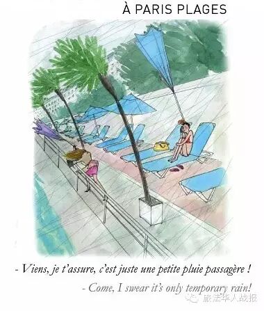 “过来吧,没关系,就一点雨很快就停啦!” ——即使狂风暴雨,依然要去巴黎沙滩。