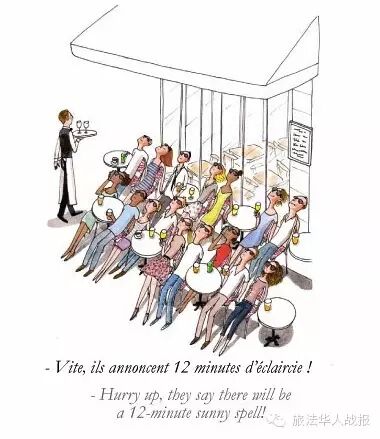“快出来!天气预报说有12分钟的太阳可以晒!” ——热爱阳光的巴黎人不会放过任何晒太阳的机会,“美黑”流行。