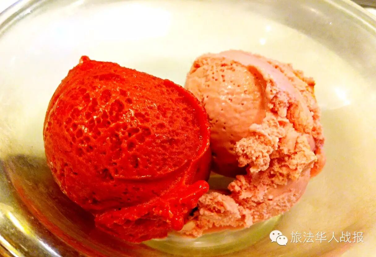 目前这家餐厅有三种套餐,分别是Tradition、Original和Gourmand,都是一个菜加一个甜点,区别在于菜式选择不同,餐厅给搭配了各种套餐。不过上面这张menu的价格仅供参考,据说各家分店的价格其实不太一样,要注意。 甜点,最经典的是搭配比利时高夫饼。但我们都不太喜欢这个,所以点了冰淇淋和法式焦糖炖蛋。
