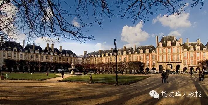 爱墙上方有一幅画,画中是一位身穿深蓝色吊带裙的女孩,斜倚在一张小桌旁,画旁边有一行小字:“保持理智,勿要强求(soyons raisonnable, exigeons l'impossible)。 爱墙周围常常人头攒聚,一对对慕名而来的情侣总是围在这里热烈接吻拍照留念,毫无顾忌地向所有人宣示恋爱的甜蜜。 爱墙值得一去,还因为蒙马特高地这个浪漫多情的艺术胜地。在爱墙宣誓过爱情,再到旁边的圣心大教堂和小丘广场走一走,绝对是情人节浪漫一天的极佳路线。 蒙马特高地还有很多美味的特色餐馆,走累了,可以进去享受节日浪漫晚餐。 地址:Square Jehan Rictus, Place des Abesses, 75018 Paris 时间:8h-18h 地铁:12号线 Abbesses Butte Montmartre Place de la Concorde 协和广场是巴黎最著名的景点之一,其精美的雕像、极富艺术气息的喷泉多次被各国导演搬上屏幕,也是情侣们约会的好去处。 协和广场位于塞纳河右岸,始建于1757年,是一个由护城河环绕的八角形广场。广场四通八达,连接巴黎中心的主要旅游景点:南面是塞纳河,东面与卢浮宫之间是杜勒丽公园,西面是香榭丽舍大街东起点,沿此路可直通巴黎凯旋门所在的戴高乐广场,旁边还有法国海军部和克里雍大酒店,中间夹着的是皇家路,向北通往马德莱娜大教堂。 著名的安吉丽娜甜品店就在协和广场不远,情侣们可以相约一起去吃。 地址:Place de la Concorde 75008 Paris 地铁:1号线/8号线/12号线 Concorde Place des Vosges 孚日广场横跨巴黎三区和四区,是巴黎最古老的广场。广场呈正方形,1605-1612年间由国王亨利四世作为皇家广场修建。 孚日广场的长长廊亭华丽壮观,廊亭沿宫殿四周而建,且有众多进出口,人们可以在广场内随意进出。现今孚日广场的廊亭已成为艺术区,不仅有很多字画古董店,还有拿着各式乐器卖唱的艺人。 孚日广场中央是一片绿色草坪,情侣们可以在草坪上坐下歇歇脚,一起看落日。