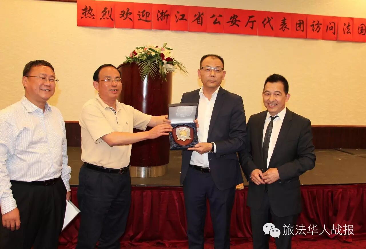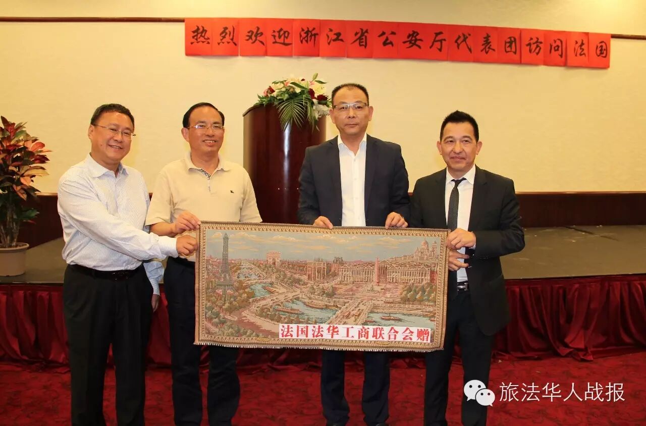当晚,浙江省公安厅代表团与法国法华工商联合会交换纪念品,并与旅法侨界代表合影留念,活动在热烈的气氛和洋溢的乡情中落下帷幕。 |