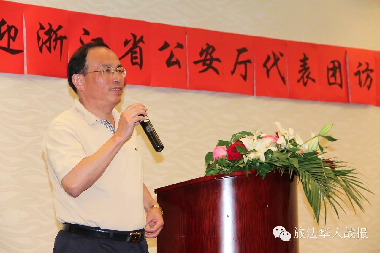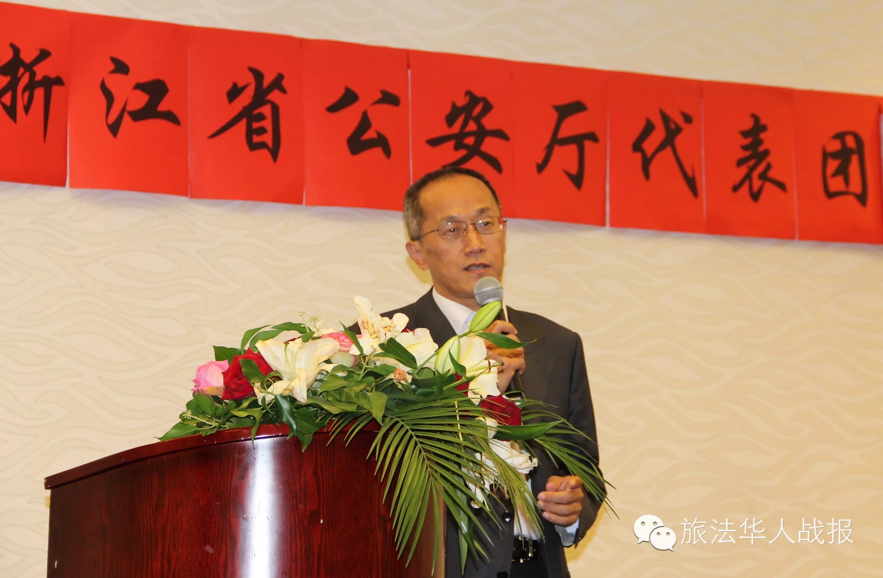 浙江省公安厅党委副书记、常务副厅长洪巨平在讲话中说,本次他率团访问意大利、西班牙、法国,巴黎是最后一站,一天之内进行了多场公务活动,与法国警务和司法等部门进行交流沟通,圆满完成了访问任务。期间,代表团一行充分感受到海外浙江同胞的热情与关怀,感受到大家拼搏与奉献的精神。法国华侨华人从零做起,用自己的双手艰苦创业,开拓创新,取得事业的巨大成功,同时心怀爱国爱乡之情,共同为祖国大业而奋斗,非常值得钦佩。 洪巨平还介绍了浙江省的经济、社会发展状况。他表示,目前浙江省的经济增幅位居全国第二,更连续八年成为全国治安最好的地区之一,这些离不开海外浙江侨胞的支持和回馈。所以,浙江省也出台了一系列全国领先的政策措施,包括身份和出入境管理等。浙江省政府时刻关注海外侨胞的发展,将一如既往维护大家的权益,尽力为大家提供最好的服务,希望海外侨胞常回家乡看看。