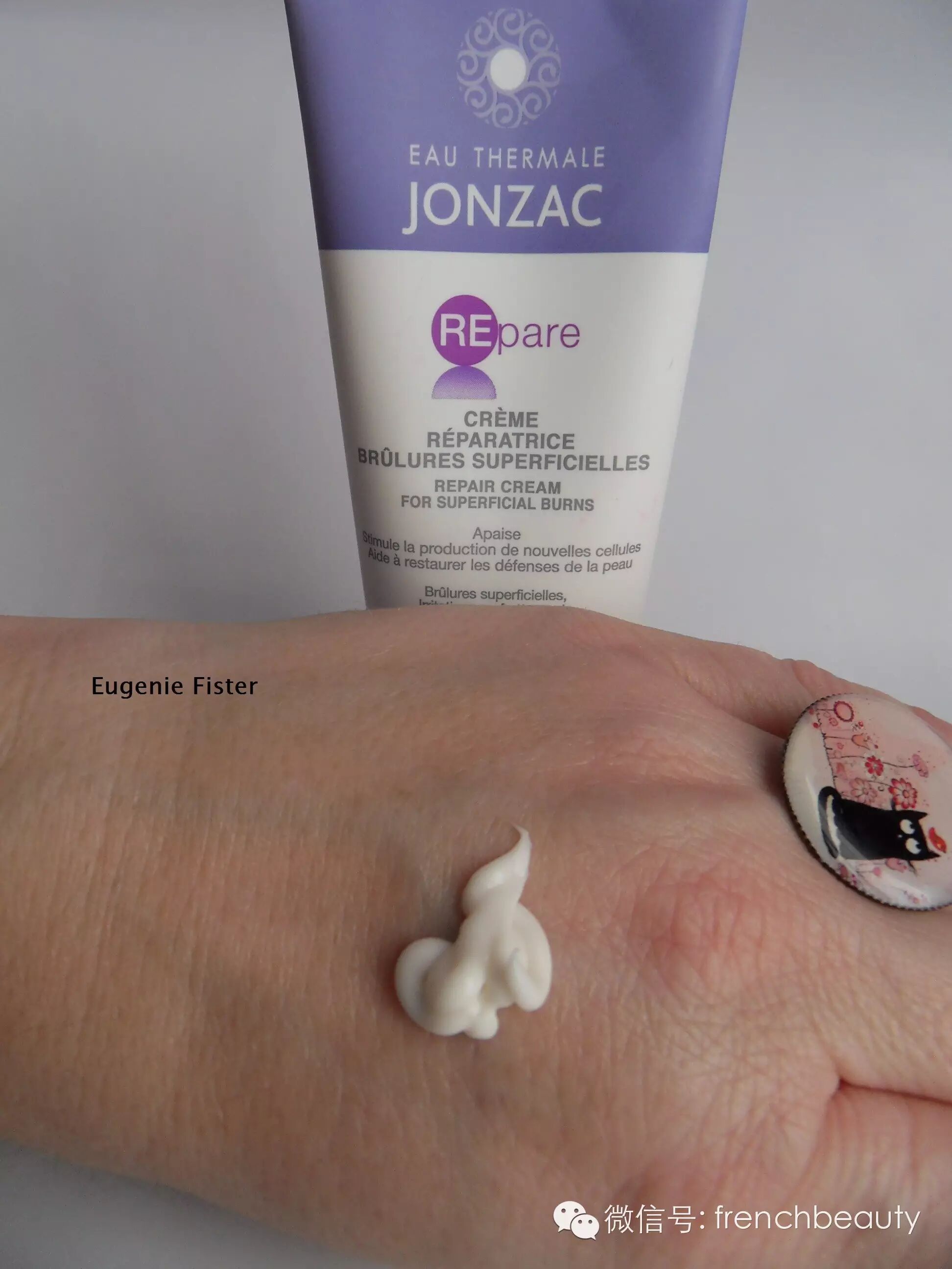 刷酸脱皮,镭射损伤,包括现在这个微整形啊,造成的创伤,都可以使用修复乳来缓解,帮助愈合。贝德玛的这款里面除了必备铜、锌、镁之外还有积雪草苷来帮助修复,甘油、果寡糖、鼠李糖、玻尿酸钠、葡萄藤提取帮助保湿和舒缓,氧化锌依然比较靠前,泛白,也有一点防晒功效,还是值得尝试的。 Jonzac Crème Réparatrice Brûlures Superficielles Jonzac修复乳