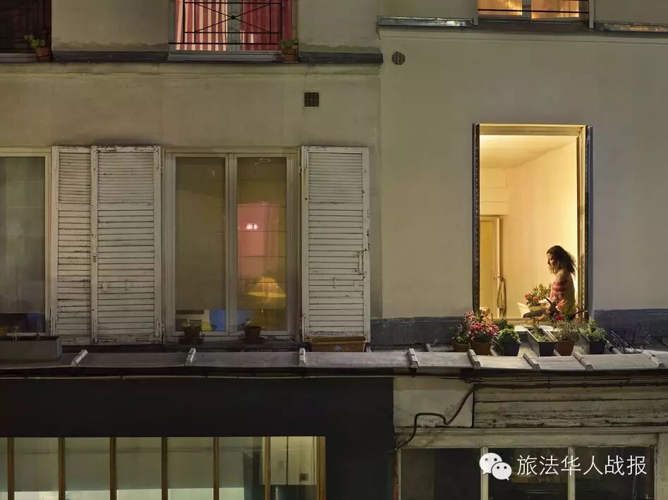 (新欧洲战报记者 鲁佳)夜幕四合,灯光亮起,每一扇窗口里都有一个故事。 摄影师Gail Albert Halaban拍摄了一系列作品《Paris Views》,将镜头对准巴黎一扇扇居民窗,拉近平凡人家的日常生活。 有人在哄孩子睡觉,凌乱而甜蜜的普通人家,在我眼里这就是幸福。 也有人是一个人睡觉,孤单的路上自由的孤单。 已过夜深的夜晚,往事像流星刹那划过心房,别去想哪里是甜蜜的梦乡。 聊八卦,看出戏,水晶灯下说天气。 卸去一身的疲惫和白天的伪装,只剩下自己。 摄影师也曾拍摄纽约系列。她说,举家搬到曼哈顿之后,有一次女儿过生日,收到附近花店的祝贺气球,而此前他们都没有见过这家花店的工作人员。那感觉很奇妙——我们与我们的邻居,到底了解多少? 而甚至,我们与我们的枕边人,到底了解多少。 生活的本质就是这么的孤独。 通过镜头可以窥视窗口,但最远的距离是,我们面对面,却不知彼此的所思所想。 小王子说,那些真正珍贵的东西是肉眼看不见的,要去聆听她的心。 其实这组作品并未侵犯隐私,说穿了,是征求过被拍摄者的同意,每个场景也是经过了设计。 它是“作品”。 不过,作品和生活是怎样的关系呢。到底是作品更真实,还是生活更真实,什么是真的,什么又是假的。 这类作品是典型的法式风格。万森·卡塞尔和莫妮卡·贝鲁奇主演的法国电影《公寓》也是类似腔调。种种错过,种种偶然,种种设计,平常的故事,负担不起的感情。 托尔斯泰那句名言:幸福的家庭都是相似的,不幸的家庭各有各的不幸。 但其实哪有完美的幸福。正如网上那个段子,说一个人跳楼,从高层往下坠,看到每一扇窗口里的生活各有各苦恼,没有一个家庭没有残缺。