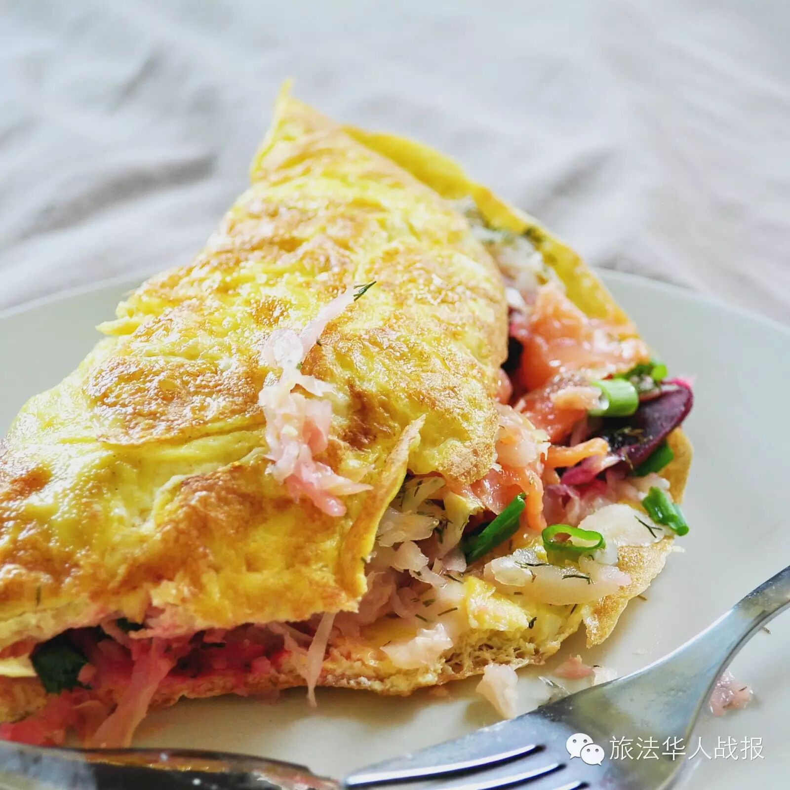(新欧洲战报记者 鲁佳)忽然想发一发这道法国最常见的小吃Omelette,直译的名字是欧姆蛋,更直白一点叫法式煎蛋卷,在中国香港等地称为奄列,言情作家张小娴有一本书的名字就叫《雪地里的蜗牛奄列》。 Omelette按照馅料不同可以分为很多很多种,比如nature的,或者鲜虾的,火腿的,培根的... 日本的蛋包饭也由此而来,只是用蛋皮包裹上米饭。此外,意大利的Frittata,西班牙的Tortilla其实也是异曲同工。或者我们说,中国的炒鸡蛋也差不多。 不过最经典的还属法国的Omelette。最传统最简单的做法是将鸡蛋和黄油搅拌煎热,将煎好的圆形蛋饼对折成即可。 当然现在法国街头琳琅满目的很多Omelette是加了奶酪、火腿、洋葱、橄榄之类。 英国早餐也会吃蛋卷,但法国的Omelette做得美妙多了。蛋饼又厚又滑,咬一口,满口留香,简直停不下来! 要做出嫩软蓬松厚实的蛋饼,可以只取蛋白,加牛奶或奶油或水,快速搅拌,打出泡沫包住蛋内水分。