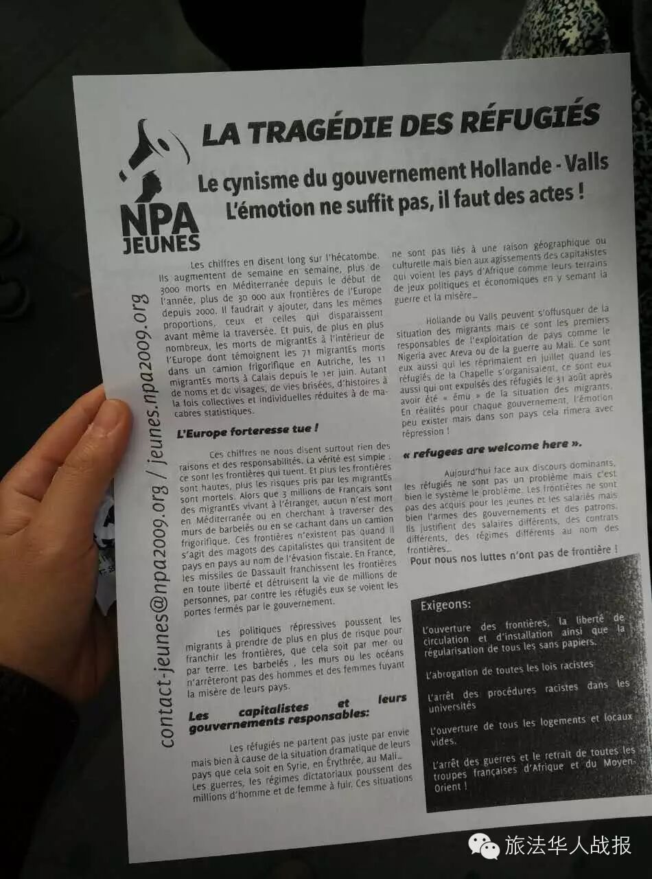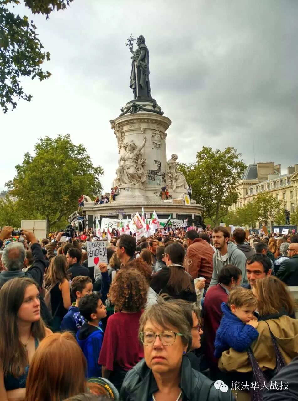 法国网友在facebook上发起声援难民的活动,号召公众于9月5日周六17时在巴黎共和国广场集会。截至5日下午,已有2.2万公众签名响应。