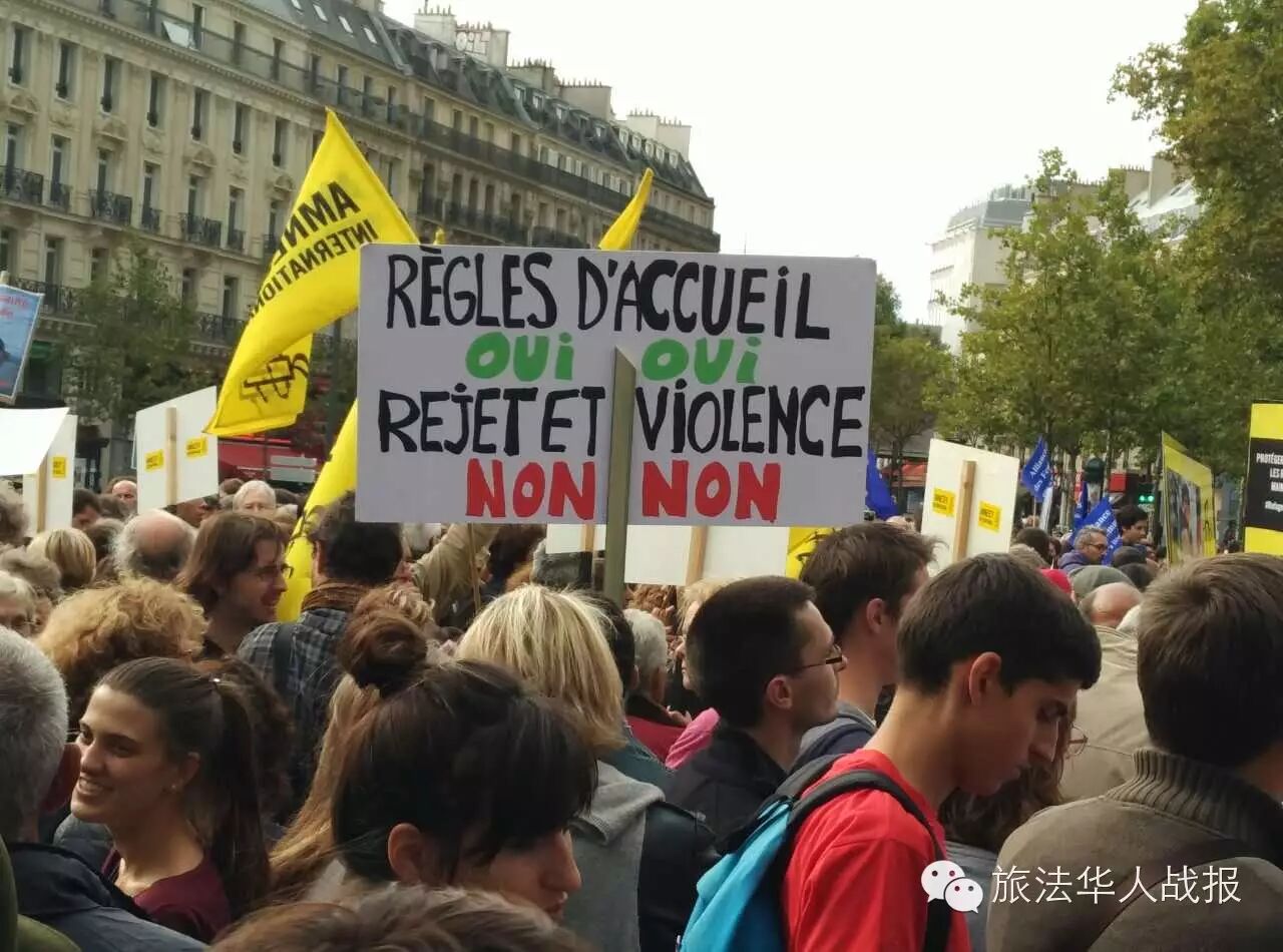 9月5日,在法国的卡昂、维埃纳、鲁昂、马赛等地,同时展开声援难民的活动。近期亦有法国民众通过建立难民接待网站等民间方式向难民伸出援手,无家可归的难民可在线申请,联系对接家庭。