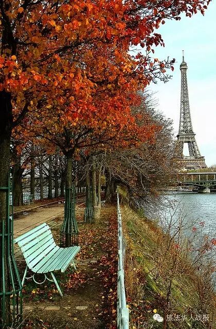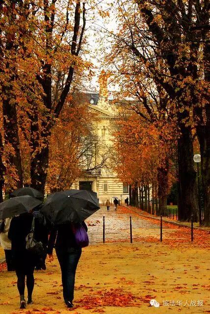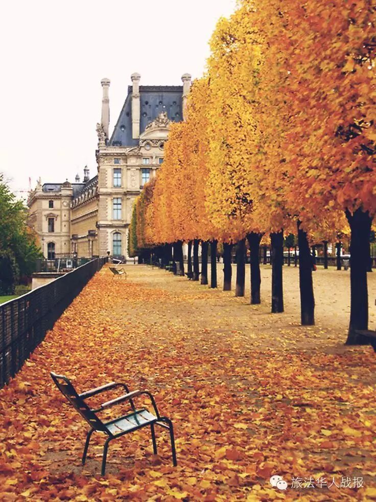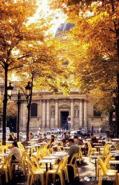 你我可能是过客,带来了对它深深的憧憬,带走了货真价实的美好记忆。你我可能就此留在这里,四季转了一次又一次,留下了许多光阴书写的故事。 战报君今天带你走走秋天的巴黎。 细胞里充满自由 夏季旅游旺季走向尾声,大街小巷也不再出现摩肩接踵的景象,如果你是第一次来到巴黎,这无疑是一件特别让人舒心的事情。不用在铁塔下排队两个小时,在香街上也不用担心稍不留心就撞到别人。尽情漫步在巴黎街头能更让你感受到法国的气息。 你可以在玛黑区置身抱着法棍的人群中,同样是在人群中,这可比被身穿白短袖的旅行团包围要好多啦。在这个季节更容易融入法国,穿上黑色外套和很酷的长靴,戴上围巾,你就是纯正巴黎人。 属于甜点的季节 抱着一本有趣的书,旁边放上烤饼干和一杯热朱古力或咖啡。幸运的是,巴黎任何地方都可以拥有这样的舒适。在ANGELINA店里享受一杯温暖的巧克力,你一定不会忘记这次巴黎之行。 沙滩和比基尼的季节已经结束,这值得庆幸,因为你可以不再为腰间稍微突出的赘肉而担心。精美的糕点在你面前一字排开的时候,就坐下来尝一尝吧,马卡龙、羊角面包都不是错误的决定。 全世界都被染色 没有哪个季节像秋天这样色彩绚丽,这个城市在秋天呈现水彩画的色调,公园变成黄色、橙色和鲜红色。你一定不要忘记去卢森堡公园和肖蒙公园走走。