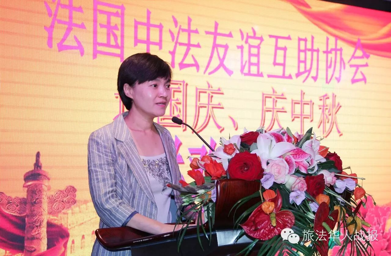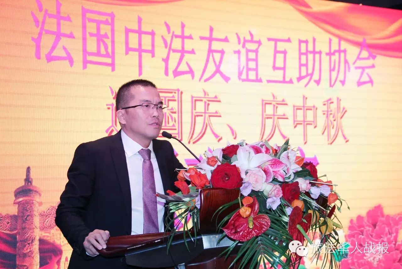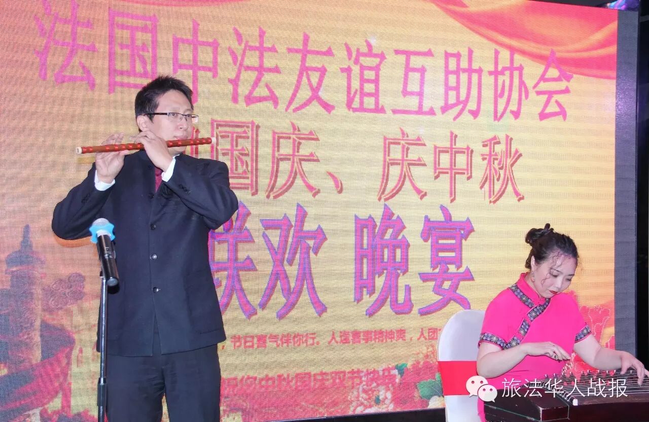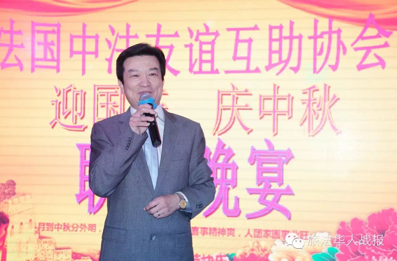 (新欧洲战报记者 鲁佳)9月22日晚,中法友谊互助协会设宴迎国庆,庆中秋。协会会员及家属、旅法主要侨社代表近二百人相聚塞纳河与马恩河交汇的巴黎华天中国城大酒店,对月高歌,欢度良宵。中国驻法使馆领事部一等秘书王原应邀出席活动,与侨胞共庆双节。
