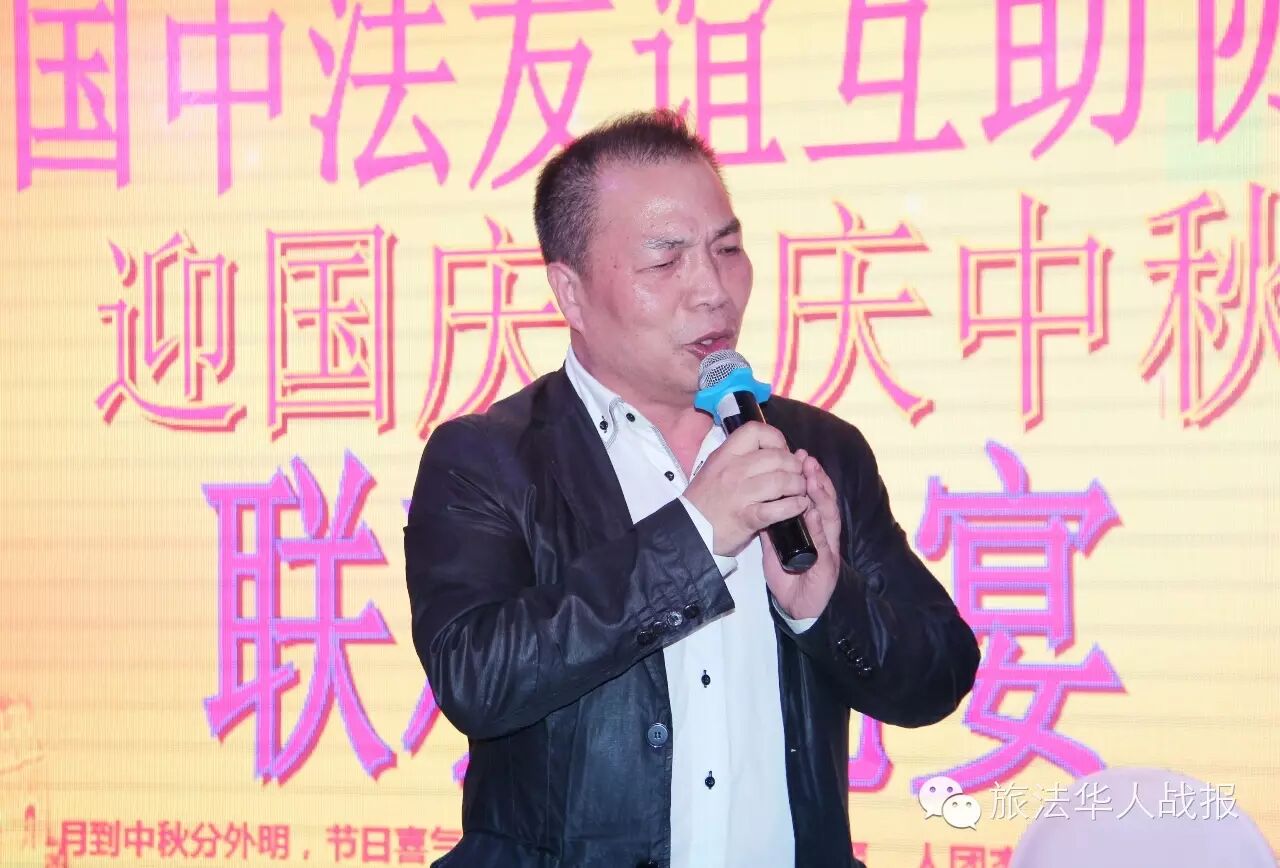 中法友谊互助协会会长张常豹在致辞中向莅临嘉宾致以热烈的欢迎和诚挚的感谢。张常豹谈到,金秋九月,喜事连连。本月3日,中国人民抗日战争暨世界反法西斯战争胜利70周年大会在北京天*安*门广场隆重举行,他与法国多位侨领到现场观看阅兵式,内心非常震撼。这场盛大阅兵不仅是对军事实力的展示,更传达出中国的和平心声。而中国要强大,不仅要发展经济,同时要重视文化传播,进一步提高软实力。中秋作为中国传统佳节,其文化内涵需要海外游子传承和弘扬。所以值此中秋和国庆双节来临之际,邀法国侨界友人共聚一堂,遥寄对祖国和家乡的情感。 在讲话中,张常豹向全体会员及各界嘉宾表示感谢,称中法友谊互助协会成立17年来,秉承创会宗旨,积极捐资兴教,促进同胞融入,做了很多实事,得到普遍认可,这有赖于会员的精诚团结和各界的鼎立支持,在此要向大家送上真挚的感激和节日的祝福。