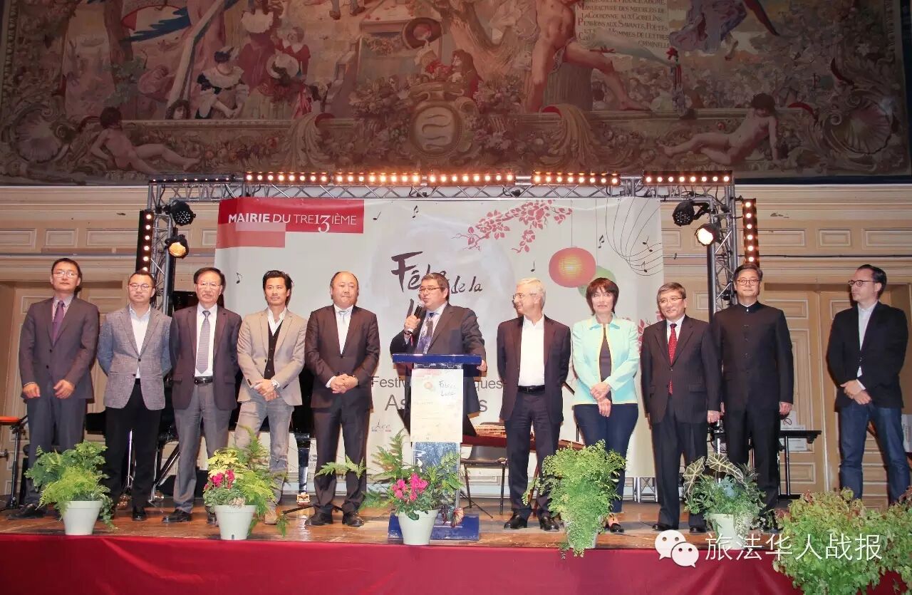 (新欧洲战报记者 鲁佳)9月26日下午,巴黎十三区一年一度的中秋活动在区府大楼前拉开帷幕。巴黎十三区区长顾梅(Jérôme Goumet)、法国国民议会议长巴托洛纳(Claude Bartolone),巴黎大区议会第一副主席龚特里(Marie-Pierre de la Gontrie),巴黎市议员陈文雄(Buon Tan),中国驻法使馆公使关键、公参马燕生、一等秘书王原等外交官,巴黎中国文化中心主任殷福,华为和TTF珠宝负责人,华裔演员周本雄(Frédéric Chau)等中法嘉宾出席揭幕庆典并向亚裔民众送上节日的祝福。