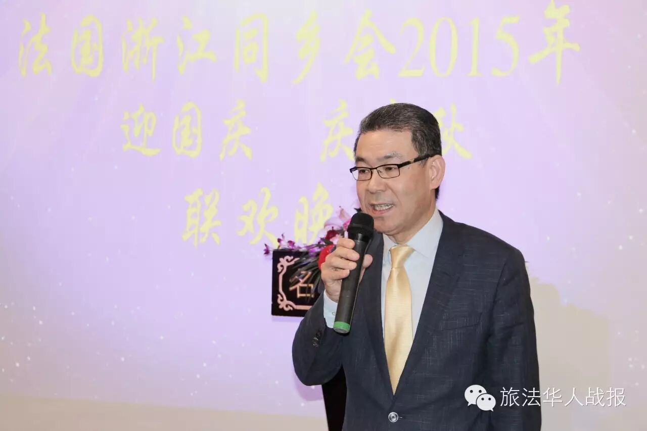 (新欧洲战报记者 鲁佳)9月27日农历八月十五,是今年传统中秋佳节。当晚,法国浙江同乡会假座巴黎名豪大酒店举办中秋、国庆双节同庆晚会。法国浙江同乡会会员及家属、兄弟侨社代表近百人共度良宵,情满巴黎。中国驻法使馆领事部一等秘书李京生应邀出席。 法国浙江同乡会会长李锐朋在致辞中表示,在这金秋送爽、喜获丰收的季节,大家迎来了中秋佳节,而再过几天就是伟大祖国的66周年华诞。双节同庆,对于海外华人来说极具意义。大家远离故土,在异国他乡生活打拼,然而多少年来对故乡的思念从未减弱。中秋是温馨团圆的美好日子,月圆人有缘,每年这个时候,旅法华侨华人华社都组织一场场活动,互叙亲情友情,寄托思乡之情,向万里之外的亲人致以最美好的祝福,祝贺祖国母亲日益强盛。感谢莅临嘉宾在百忙之中应邀欢聚一堂,并祝愿大家幸福安康。