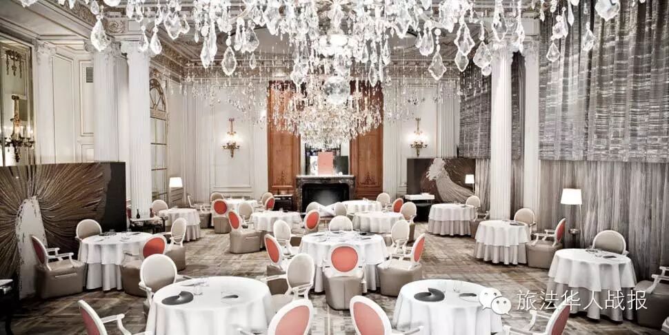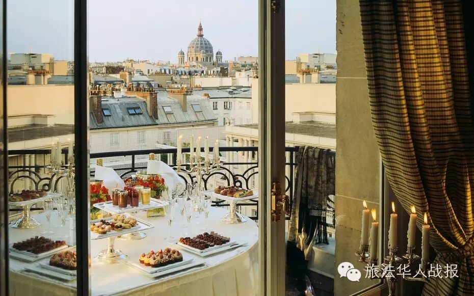 这里的餐厅是米其林两颗星的,而且是巴黎唯一一家根据季节推出不同餐厅的酒店。特别值得一提的是酒店的巧克力蛋糕。这被一些食客认为是所吃过最美味的巧克力蛋糕,松软的蛋糕皮下是温热柔软的巧克力酱,入口如同爱情般温柔甜蜜。 地址:112 Rue du Faubourg Saint-Honoré 75008 Paris 4莫里斯酒店(Le Meurice) 莫里斯酒店的一项卓越之处在于美丽的景观资源。躺在总统套房主卧的床上,可以看到近处巴黎歌剧院的屋顶和远处蒙马特高地的圣心教堂,床前的窗棂是绝佳的取景框,而站在露台上,可以鸟瞰整个巴黎。到了夜晚,埃菲尔铁塔的灯火和香榭丽舍大道的车水马龙形成一片璀璨的光辉,与宾朋举杯畅饮是何其独特的经历! 这个有两百年历史的酒店信奉客人的要求要被充分满足的信念,怪才达利在阿方斯三世住过的房间居住时,在酒店的墙上画得星星点点,亿万富翁弗洛朗斯-古德在此地举办文学午餐,成为巴黎最后的文学沙龙。