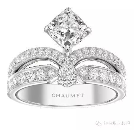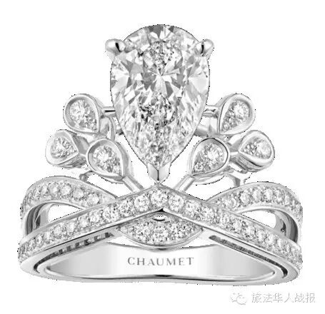 Chaumet系列婚戒还有很多款式,每一种都有美到没朋友了。让我们来看看Angelababy钻戒同款吧。 Joséphine繁花辉映铂金戒指: