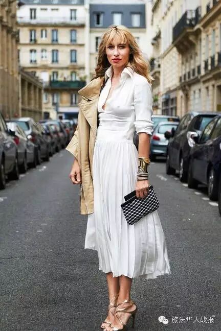 在巴黎的时候,穿了件宽松的白色马海毛毛衣,然后看着满大街的修身款,心想好在没有带我那破洞BF牛仔裤。。。但不得不说,还是修身款式最classy。 松松垮垮的衣服搭不好很容易显得臃肿和笨拙,甚至觉得整个人都消失在一坨衣服里了。不过归根结底,最重要的还是一个比例。不是让你从此舍弃你的BF款,而是学会巧妙地利用腰带和高跟鞋这样显身材的好助手。要的是慵懒与优雅并存,不是随意而邋遢。 c. Chic 突然想到曾经某女星在采访里说自己买完衣服回家第一件事是剪掉所有的标。对于这个看似多此一举的行为她是这么解释的:“我希望是我穿衣服,而不是衣服穿我。” 我想这已经很好地诠释了Chic的核心吧。不一味地追求品牌,不盲目地跟随潮流。Chic其实是一个不断修炼和提升的过程,并非是与生俱来的。是学会利用时装去衬托自己的气质,给自己加分而不是拖后腿。 The Basics - 10 Item Wardrobe 如果只用10件单品来诠释Parisian Chic,那我会选以下几件。 外套: a. 黑色皮衣:个人比较偏爱软软的羊皮,但是牛皮会更经得起时间的考验。 b. 米色或驼色风衣:长度一定要过臀,到膝盖上方的长度最佳。具体款式可以参考Burberry。 外套的剪裁一定要修身修身修身。不然松松垮垮就一下子成北欧风了。。。 上衣: c. 白色BF衬衫:史上最难买的单品Top 3。面料首选棉和亚麻,不怕麻烦的可以选真丝。至于雪纺嘛,还是算了吧。而材质太僵硬,颜色太荧光白就很容易显得跟公司发的廉价制服一样。 d. 真丝吊带:就是觉得真丝是最凸显女人味的一种面料,而且可正式可休闲。虽然可能伺候起来稍微麻烦些,但是不得不说搭配的可能性太多了。跟不同面料形成的对比都别有一番风味。 e. 圆领薄套头衫:黑色,深蓝,灰色,驼色都可以。最适合layering了,也可以单穿。面料请优先考虑羊绒,羊毛,马海毛。兔毛太爱掉毛了,不过骆驼毛也可以考虑。合成材料不够保暖,不够显好。再多唠叨一句,这种贴身毛衣一定要够糯软,不然痒和扎难受的是自己! 下装: f. 紧身牛仔裤:黑色或深蓝。裤腿不要堆在脚踝那里!!干脆买九分(或者找个好裁缝)要不就把裤腿挽上去。不要花哨的裤兜或鲜艳的走线,破洞也尽量避免。顺便友情提示深色牛仔裤很可能会掉色或者把颜色转移到浅色衣物上(绒面的包也要小心)。 g. 西装裤:黑色最佳。但是也可以考虑其他基础色和条纹,千鸟格纹。要修身。尽量避免polyester,其他面料选购之前要考虑是否容易粘毛和是否容易皱。 h. 半身裙:原本想放little black dress的,但仔细想想还是半身裙的搭配更多一些,而且选购起来更容易一些。至于是买铅笔裙还是A字裙完全取决于你的身材。只要别太短,花色不太夸张,真的很百搭的。 鞋子: i. 平底鞋:不管是乐福还是d'orsay,一双舒适的平底鞋陪伴你穿梭整个城市是不可缺少的。选鞋的时候一定不要选头特别圆的,头太圆显得不够大气。