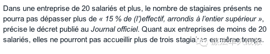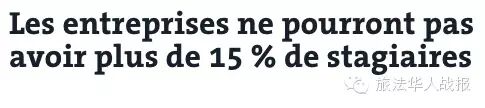 10月28日本周三,《宪报》刊登一道政令,今后,领薪员工(salariés)在20人以下的公司不能在同一周内雇用三名以上实习生,领薪员工在20人以上的公司,雇用实习生的人数不能超过员工总数的15%。也就是说,一家有100名员工的公司,其中实习生不得超过15人。而且,每位员工所带的实习生以3人为限。 该政令也规定了例外情况,即在行业强制培训时期(périodes de formation en milieu professionnel obligatoires),领薪员工在30人以下的公司,可将实习生比例提高到员工总数的20%。 该政令不啻为一声惊雷,对于资方及实习生的影响广泛。 法国,在长期合同(CDI)框架内雇用员工,公司在支付员工工资、给予员工车补和饭票等福利之外,还需缴纳相当高的税费。举例说,一家公司要雇用一名CDI员工,涉及从学生居留转工作居留的情况下,按照通行规则要求工资达到法定最低工资(smic)的1.5倍,法定最低净工资现为每月1137欧元,但加上各种税费,最低毛工资为每月1457.52欧元。按照1.5倍计算,即净工资1705.5欧元,毛工资为2186.25欧元。 而按照今年9月1日起实行的工资标准,实习生最低工资为每月554欧元。其用人成本,相差近4倍。也就是说,公司雇一名CDI员工的支出几乎可以雇四名实习生。 所以,尽管实习生的工作效率和质量与领薪员工或存在一定差异,但在巨大的成本压力下,不少公司倾向于在中坚岗位签订长期合同,在一些“可通融”的岗位雇用实习生。实习生的工作时间,按照不同院校的不同实习要求及可出具的实习合同,通常在3个月到9个月(特殊情况下可能更长)。受实习生的工作质量和实习时间影响,往往导致公司人员流动性大,不利于可持续发展;但签订长期合同,除了要付出高额的成本,也涉及“解雇难”等情况,在以上种种双刃剑的交锋下,现实情况是,相当一部分公司的实习生比例很高。 去年6月法国出台实习管理法案,旨在保障实习生权益。法案规定,从今年9月起将实习期超过两个月的实习生工资从每月508欧元提高到554欧元,车补和饭票等福利面向所有实习生,而且实习生不能比领薪员工的工作时间长,不能把有危险的工作交给实习生等等。