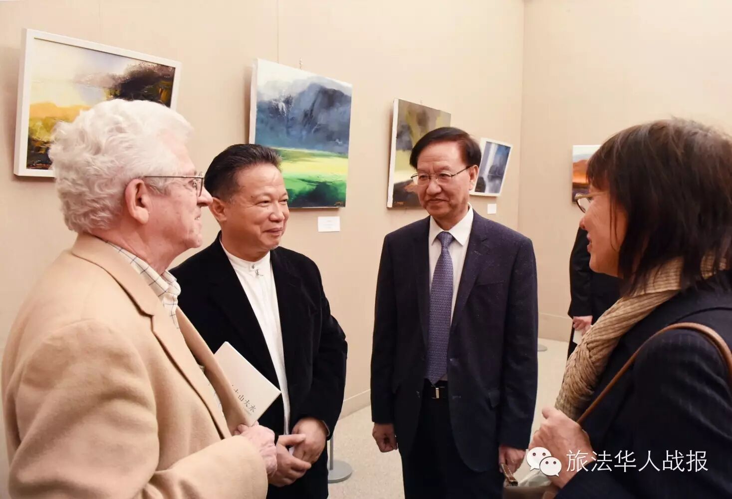 (新欧洲战报讯)10月29日晚,《大山大水——吕中元油画禅境作品展》在巴黎中国文化中心隆重揭幕。巴黎中国文化中心主任殷福、法国著名艺术教育家伊维尔、巴黎高等装饰艺术学院荣誉教授马皮拉尔、法兰西艺术院通讯院士高立昂、中国驻法使馆武官华晓、著名旅法华侨前外交官汪华、艺术家吕中元老师本人以及中法两国艺术家、多家新闻媒体百余人出席揭幕式,并共同观看首展。 撰稿 | 崔雨及 摄影 | 吴钢