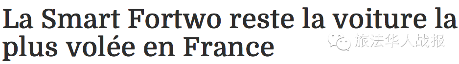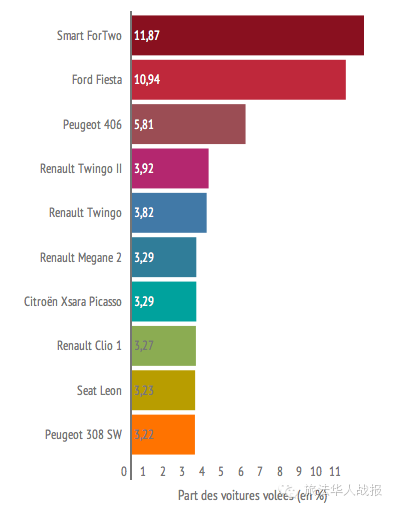 (新欧洲战报记者 鲁佳)最新披露的调查报告显示,每年在法国失窃汽车约有11万辆,其中以普通小汽车居多,Smart Fortwo连续两年登上最易失窃汽车榜首。高档汽车和越野车不是最容易被盗的车型,但最容易被打砸破坏。 ![]() 这份报告是由4000万驾车人协会发布的,调查时段从2014年7月1日至2015年6月30日。据报告,失窃车辆几乎都是法国和德国品牌。专家解释说,窃贼最青睐Smart Fortwo,因为其车型小巧,容易运输和拆卸,且电子防盗系统薄弱。而不同地区的窃贼,口味也略有不同。巴黎近郊93省,失窃率最高的是雪铁龙DS3。 失窃率最高的法国车Top 10