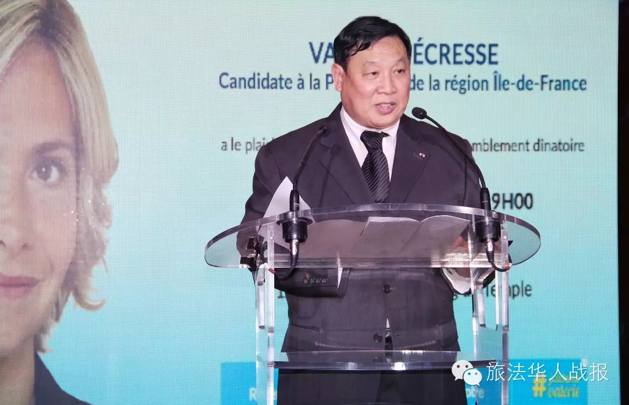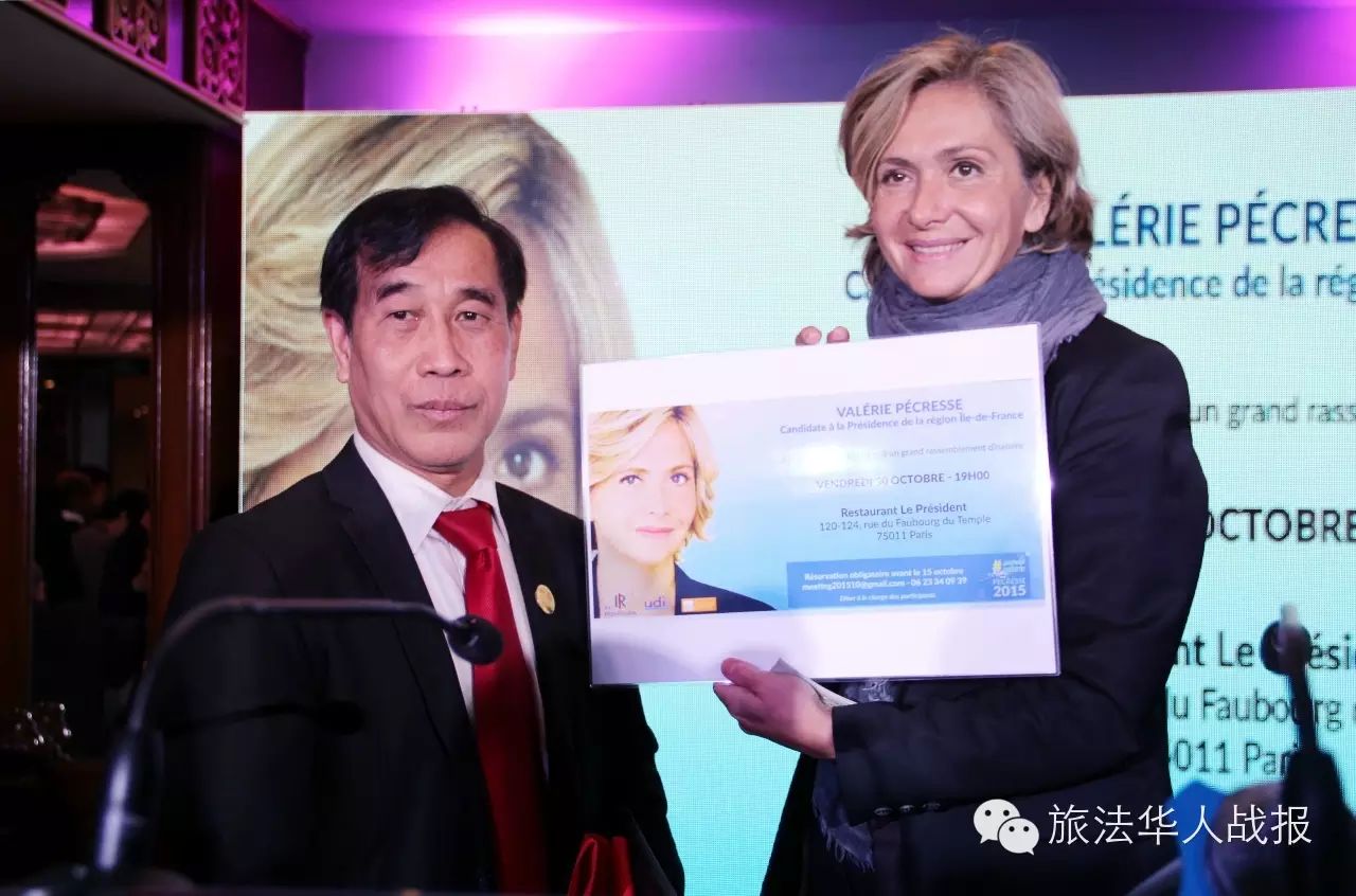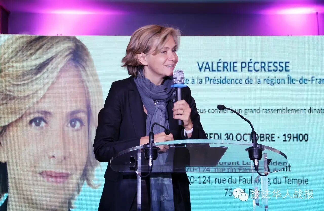 (新欧洲战报记者 鲁佳)10月30日晚,法亚共和联盟(RRFA)假座巴黎幸福楼大酒楼举办巴黎大区议会主席候选人瓦莱丽·佩克雷斯(Valérie Pécresse)见面会。 [attach]2356309[/attach] 法亚共和联盟主席蔡垂彪、永远名誉主席何福基、名誉主席钱美蓉、巴黎六区区长勒考克(Jean-Pierre Lecoq)、巴黎八区区长涛特塞尔(Jeanne d'Hauteserre)、巴黎十七区区长库斯特(Brigitte Kuster)、法国外移公民理事会主席斯蒂安(Olivier Stirn)、巴黎市议员布尔纳泽勒(Pierre-Yves Bournazel)、欧拜赫维利耶(Aubervilliers)市议员田玲、法华商业俱乐部主席帕里索(Harold Parisot)、法国潮州会馆会长吴武华以及法国各界亚裔代表三百余人出席见面会。活动由法亚共和联盟第一副主席Jean-Pierre Vong主持。