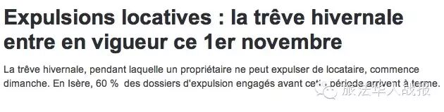 ![]() 在法国,冬歇期禁逐令于每年11月1日启动,但由于法律禁止21点到6点驱逐房客,所以真正启动时间是10月31日晚。 一般来说,房客因为经济窘迫拖欠租金,或故意累欠租金不缴,房东都有权将其驱逐。据统计,法国每年经法院判决执行的驱逐房客事件多达十余万件,其中一些是在警方协助下执行的。被驱逐者有时会被送到紧急收容中心,或投靠亲戚朋友,也有人不得不露宿街头。在冬季,由于天气寒冷,被驱逐房客的生活窘迫不堪。