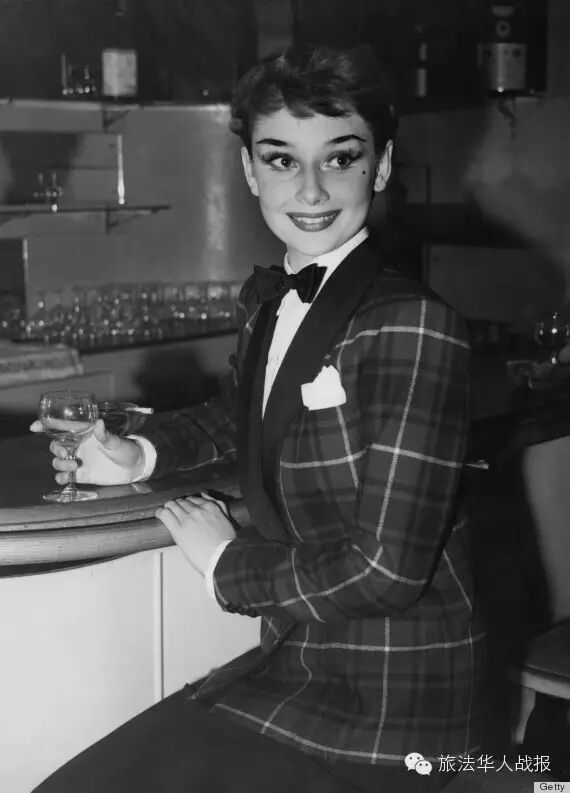 条纹衬衫和利落短发也能带来你所期待的女人味。你看,赫本的自信笑容让“男孩装”的造型更阳光。