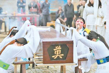 中国的丧葬礼仪通常要持续一周或一周以上。比如亲人亡故后,风水先生先来安置摆设、时间日程和礼仪步骤。随即每个家庭成员分别承担各自的角色,在整个过程中按辈分、年龄和男女分担责任。从守夜、叫魂到哭丧等等,各有讲究。这是一个集体或家族式哀悼的方式。 每个家庭成员在此过程中依照他们和亡故亲人的关系,及其在整个家族中的地位重新归位。每个家庭成员各自承载着不同程度的悲伤,比如爷爷的去世,孙女哀伤失去最疼爱她的爷爷,儿子悲伤失去了榜样般的严父,女儿悲伤慈父的一去不返,奶奶百感交集终身伴侣的丧失,丧葬礼仪允许他们消化悲伤,在一种集体模式中追忆过去,面对死亡现实,从而在“白喜事”结束后重新开启未来。