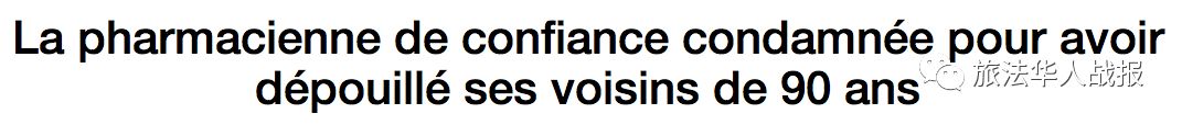 巴黎郊区78省(Yvelines)一名女药剂师,涉嫌欺诈两名年约九旬的邻居夫妇,骗取超过46万欧元,近日被判处10个月监禁。 据港媒报道,这名59岁女药剂师住在松桑镇(Sonchamp),镇上有一对年龄分别为93岁和95岁的老年夫妇。2014年5月,老夫妇因拒绝入住养老院,于是开始接受邻居女药剂师的协助照顾,他们认识已10多年。老夫妇把银行卡交给女药剂师,并在银行签字授权让她管理户头。而且老夫妇没有子女,故此更改遗嘱让女药剂师成为继承人。 2016年8月,财政部反洗黑钱部门察觉有异,发现被告在18个月内以支票和提款方式取走22.15万欧元,她又买下该对老夫妇的人寿保险合约和终老房屋,数额高达46.7万欧元。该对夫妇于2017年去世,他们的侄女控告女药剂师诈骗。 在法庭上,女药剂师否认骗取任何金钱,辩称一切开支合法合理;其儿子同遭检控,但同样否认所有控罪。 (编辑:鲁佳) |