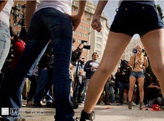 近日,女权组织者抵达西班牙马德里,在西班牙的国庆日,在马德里的闹市区上进行大游行,一些女权主义者的积极分子从马德里的pez street走到西班牙广场,她们裸着上身,在胸部上写着口号手里也高举着标语,一 ...