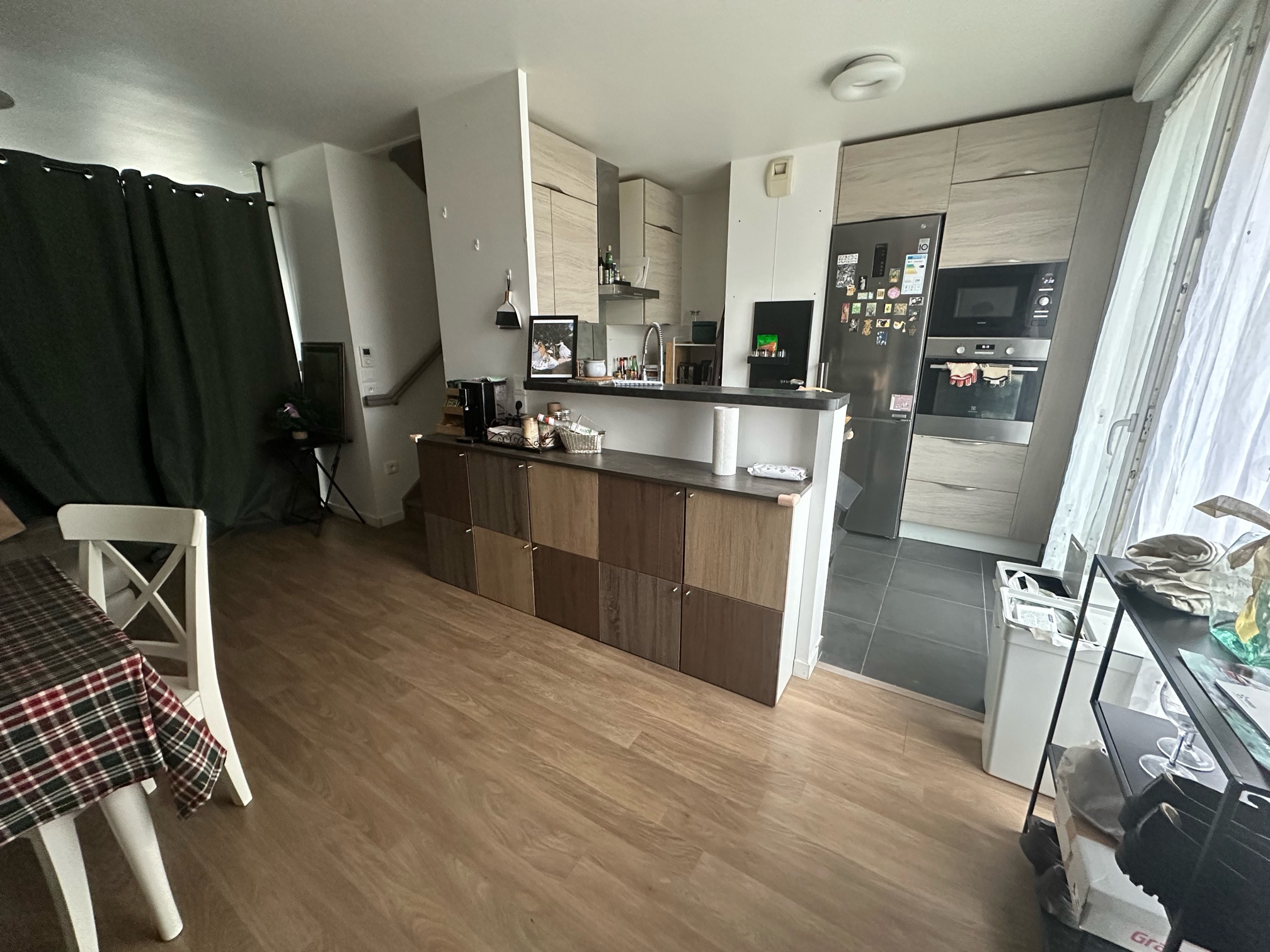 整套房子一共4个房间,其他两个房间目前住的一个法国男生(小学老师), 一个中国女生和一个中国男生;大家都白天上班, 早出晚归, 晚上厨房做饭一起聊聊天,作息非常有规律, 夜晚非常安静。人都非常nice,人很热心,法国男生也非常gentil, 平时还可以练练法语。大家值周轮流打扫卫生,房子更配备扫地机器人,手机操作一键扫走灰尘头发。 生活 楼下有24小时开门的麦当劳,3家银行,三家超市,生活非常方便 房子对面就是市政府,办事方便。