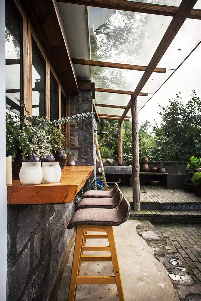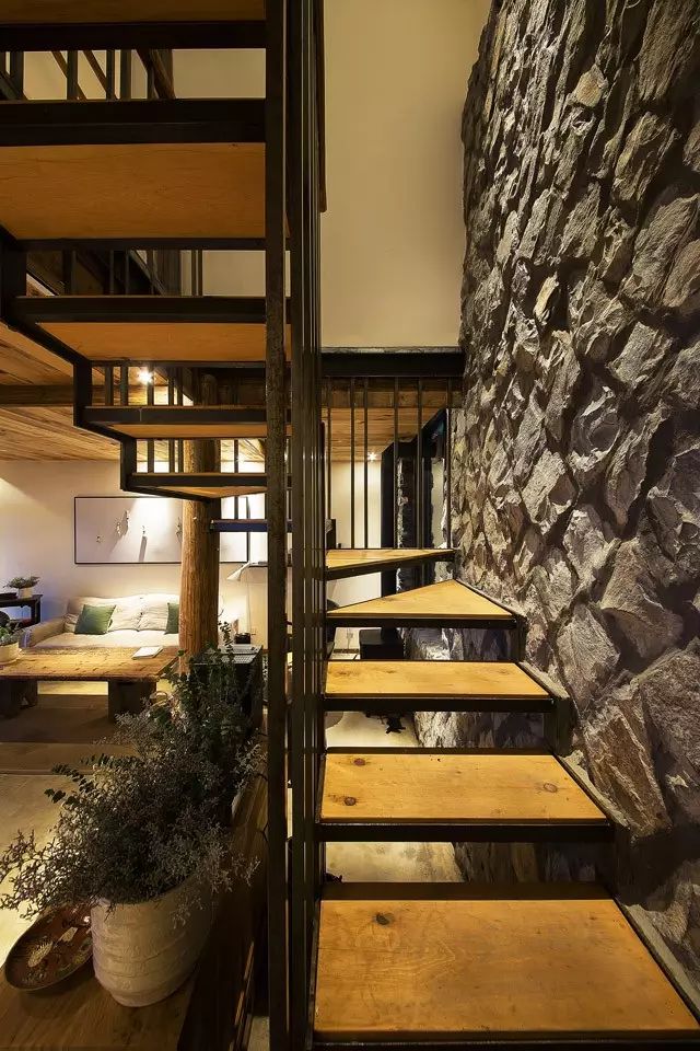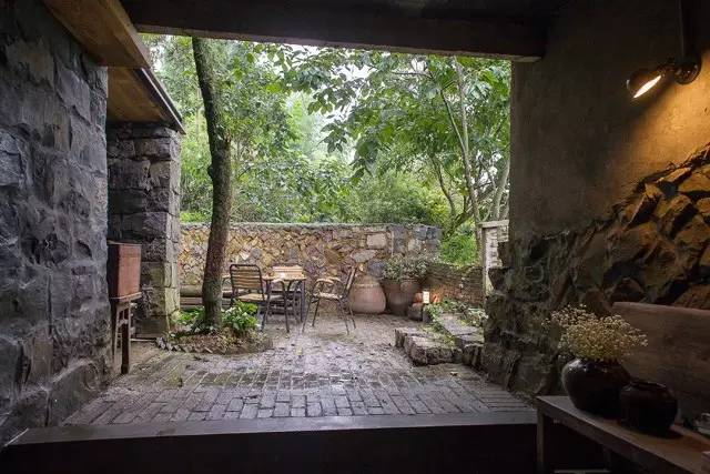 空间规划设置了一个大厅和三间客房,搭配上收集的古旧器皿,有质感的肌理材质在充满自然气息的空间内,依稀可以触摸到有温度的感触——木与砖石的房子,发声的木板,打滑的石板和路边不知名却熟悉的草虫,当然还有泥土的气息和雨季的霉味……让人跟着自然一起呼吸。