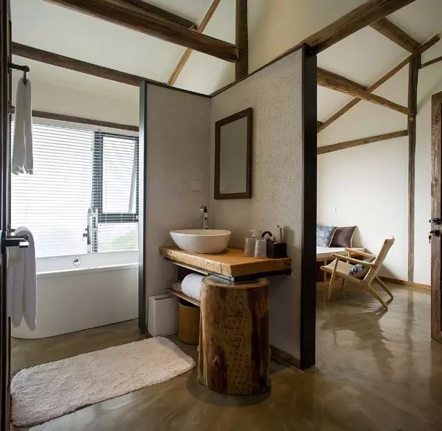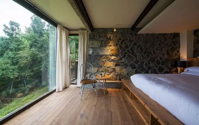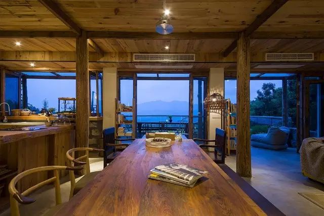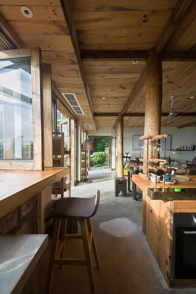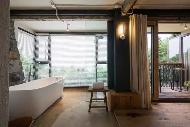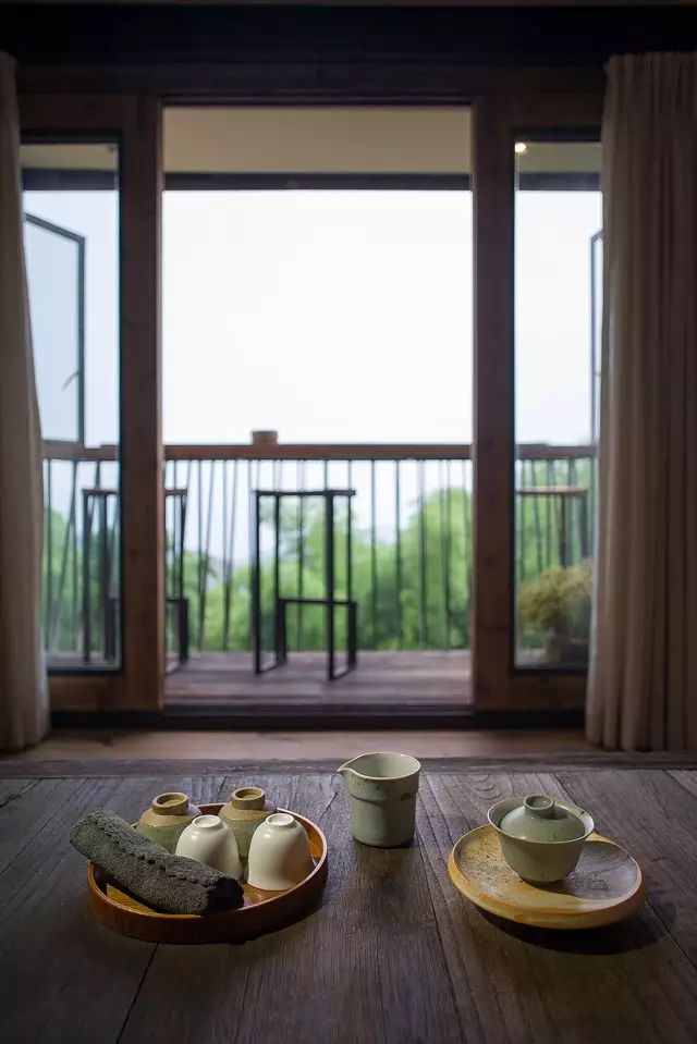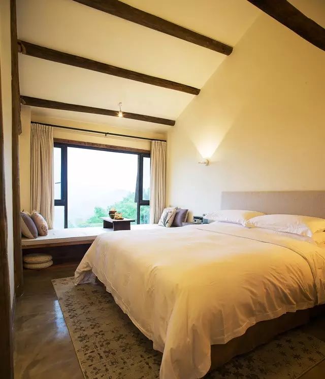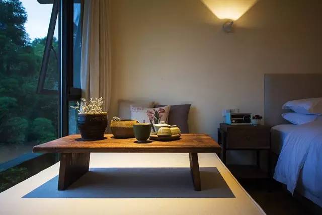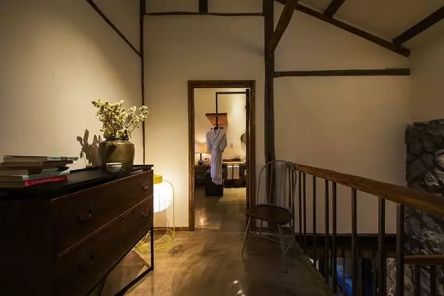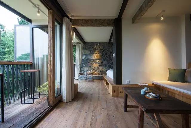 在户外空间的处理上,设计师用最朴实、低调的建材并藉由坡形地形,最大限度的接触自然;内部设计直取设计的本质,采用大量的“有温度、有感情”的木质元素和天然材质,尊重古建筑的原有语言,只保留事物最基本的元素。不求华丽,旨在体现人与自然的沟通,营造了一席“户庭无尘杂,虚室有余闲”的栖息之地。