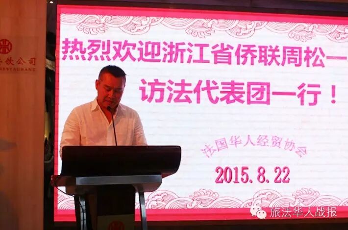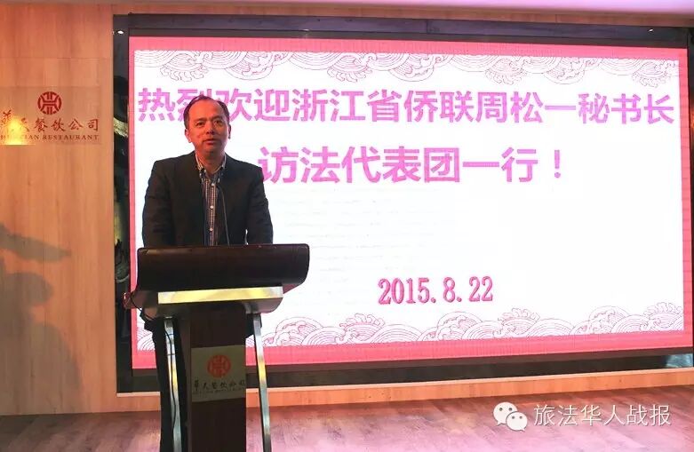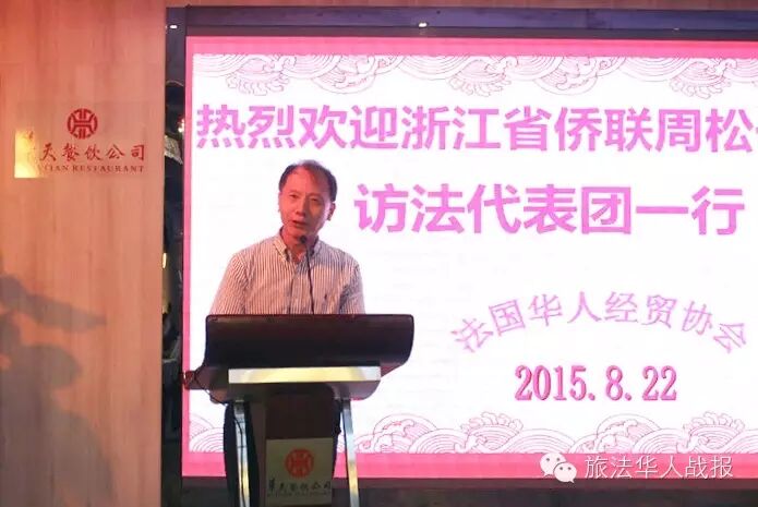 周松一秘书长在讲话中感谢中国驻法使馆对浙江省侨联工作的一贯关心与支持,并代表中国侨联副主席、浙江省政协副主席、侨联主席吴晶女士对法国侨界的热情接待表示衷心感谢。此外,对21日晚从马赛到巴黎的高铁起火导致行程延误事件,向大家表示歉意。 据悉,8月21日,浙江省侨联代表团到法国南部实地考察马赛国际商贸城项目。周松一谈到,马赛不仅是法国第二大城市和第三大都会区,同时也是法国最大的商业港口,非常具备成为“21世纪海上丝绸之路”在欧洲地区要塞港口的条件。此次马赛国际商贸城项目的建设,符合“一带一路”特色,一定会给旅法华人华商带来新机遇,帮大家实现更好的发展。