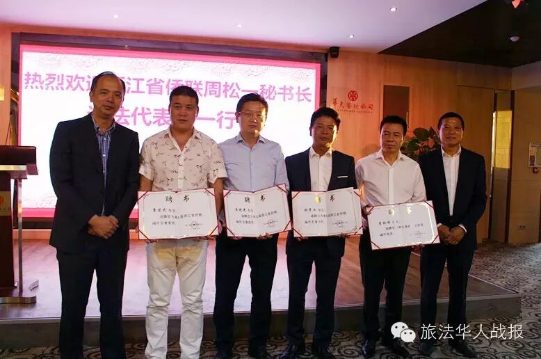 当晚的活动由法国华人经贸协会第一副会长李传敏主持。周松一秘书长代表浙江省侨联向法国华人经贸协会赠送了纪念品。 周松一和卓旭光还代表浙江省侨联为法国华人进出口商会会长苏荣武、法国外籍兵团退伍华人协会会长胡奇业、法国浙江同乡会会长李锐朋、法国华人贸易促进会会长温晓光颁发了浙江省侨联海外委员聘书。 (编辑:鲁佳) |