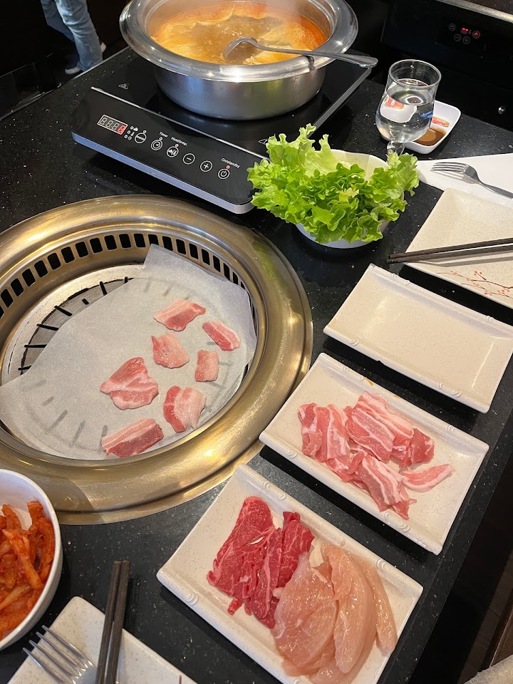 这是一家集合亚洲各类美食的餐厅,主要以自助火锅和烧烤为主。