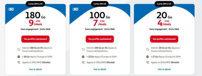 Auchan Telecom首页直达4.99€享20G套餐7.99€100G 5G套餐9.99€180G 5G套餐