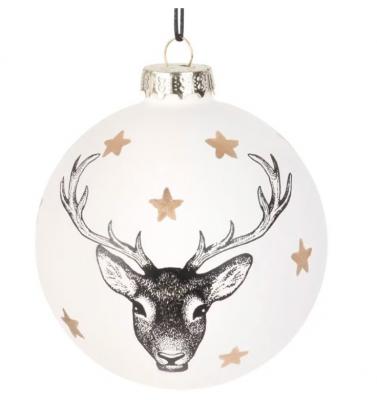 白色染色玻璃驯鹿印花圣诞球 6件装🔗
