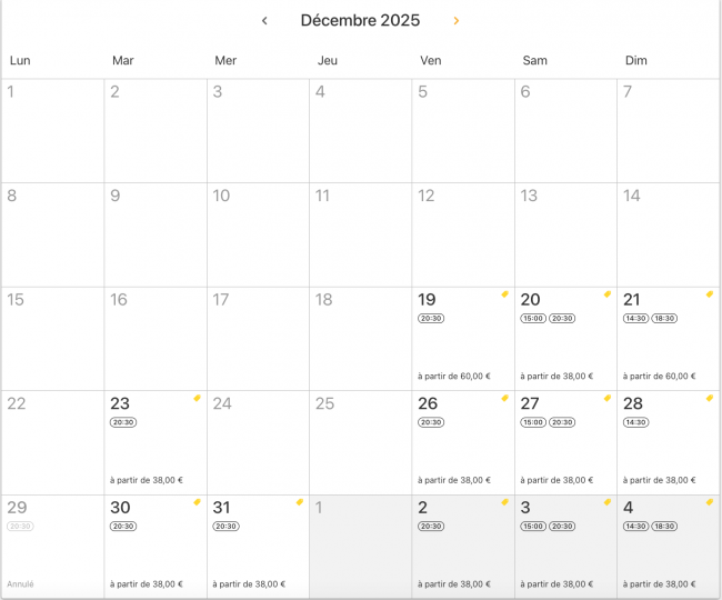 📅 演出时间:2025年12月19日 - 2026年1月4日(共18场) 🏛️ 演出地点:Palais des Congrès de Paris(2 Pl de la Pte Maillot, 75017 Paris) 💸 票价:€38 - €99 不等(部分Fnac+会员享折扣)🎫 超级火爆!!火速抢票!!