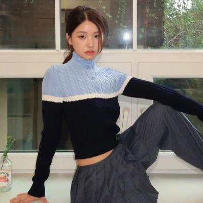 针织拼色高领毛衣🔗