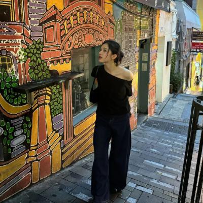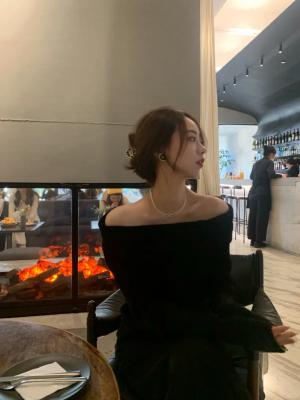 黑色针织一字肩🔗