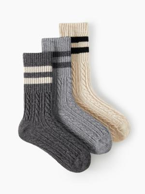 条纹羊毛混合袜 3双🔗