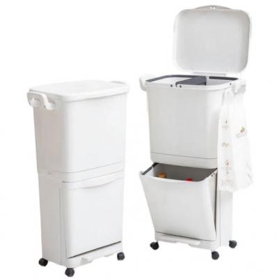 ochama×京东京造 日式分类垃圾桶 双层家用客厅厨房 带盖带滑轮 可移动 45L🔗