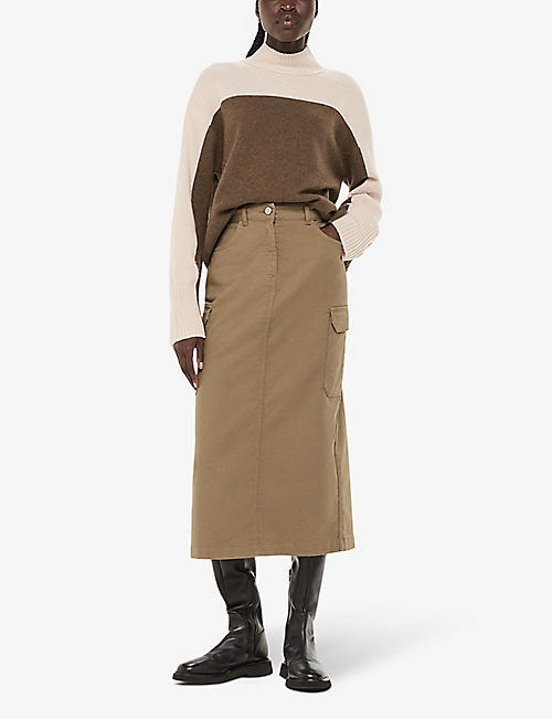 条纹图案高领弹力棉套头衫🔗