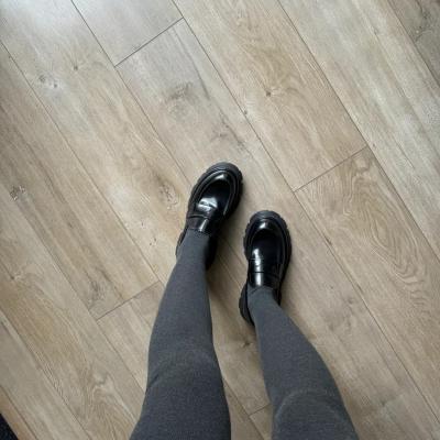 👉 黑色皮革乐福鞋 >> 光滑小牛皮皮质细腻,鞋型修长显脚瘦,金属马衔扣点缀恰到好处