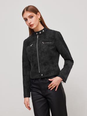 Suede 高领拉链骑士夹克🔗