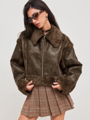 City Chic 仿羊羔毛翻领夹克🔗